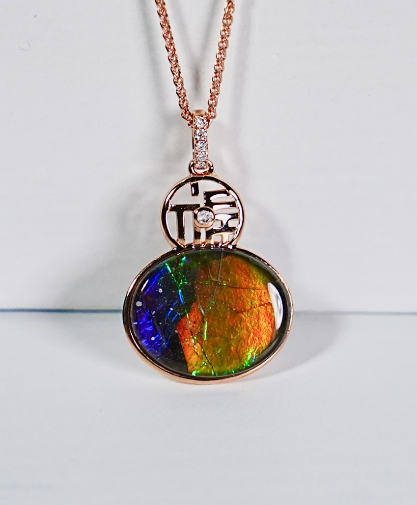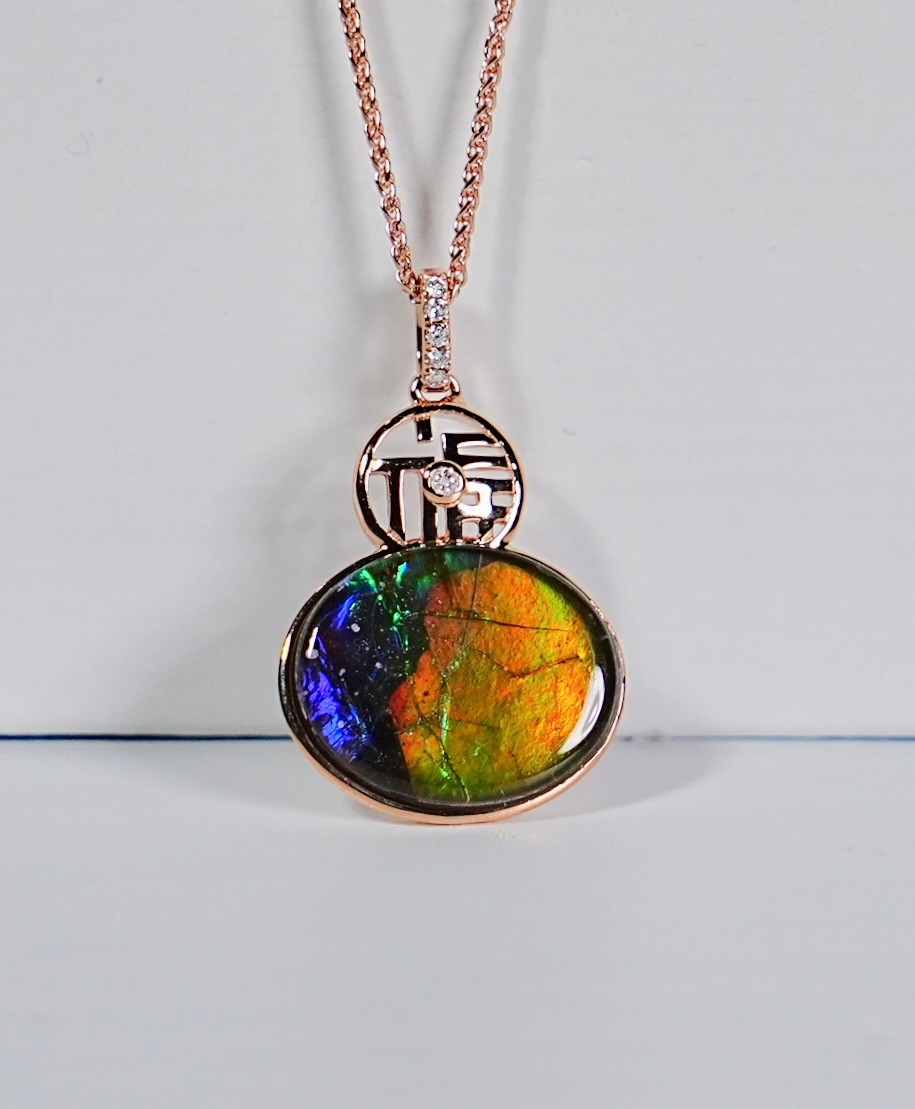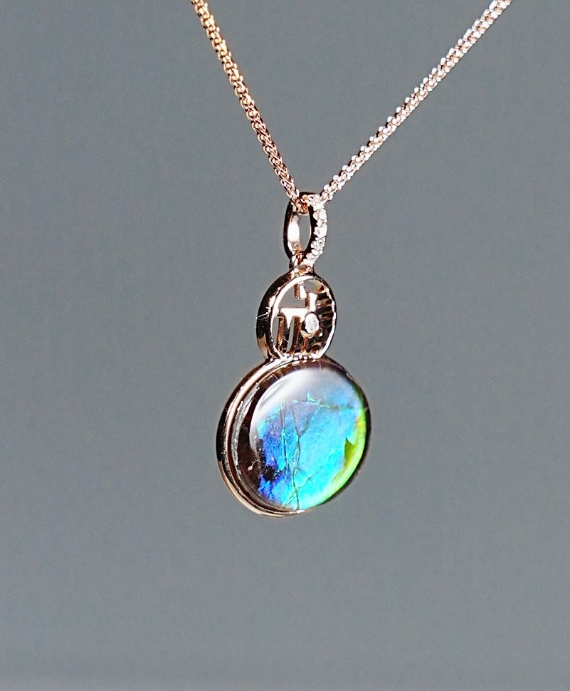 灵丹妙药|加拿大斑彩石葫芦玫瑰金吊坠 #2074
